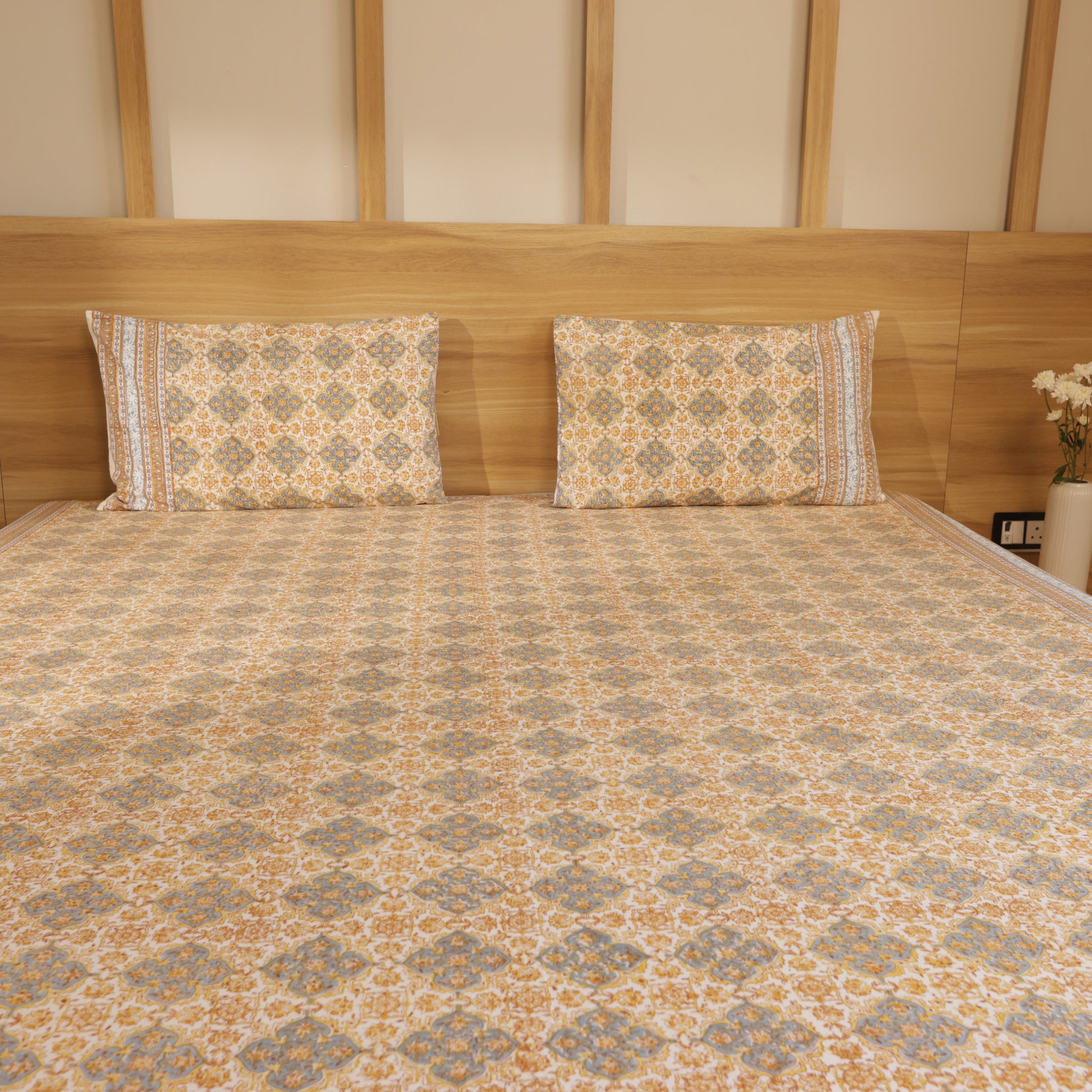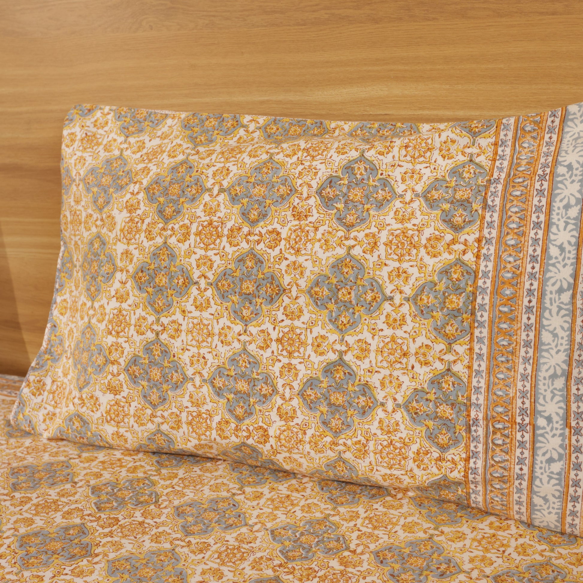 Crafted from breathable, pure cotton, the Golden Lattice Bed cover from Jaipur combines traditional artisan skill with modern comfort. Its lightweight fabric ensures a cool, restful sleep while remaining easy to maintain. This bedcover offers both everyday practicality and a refined aesthetic, enhancing your bedroom with timeless elegance and lasting quality.