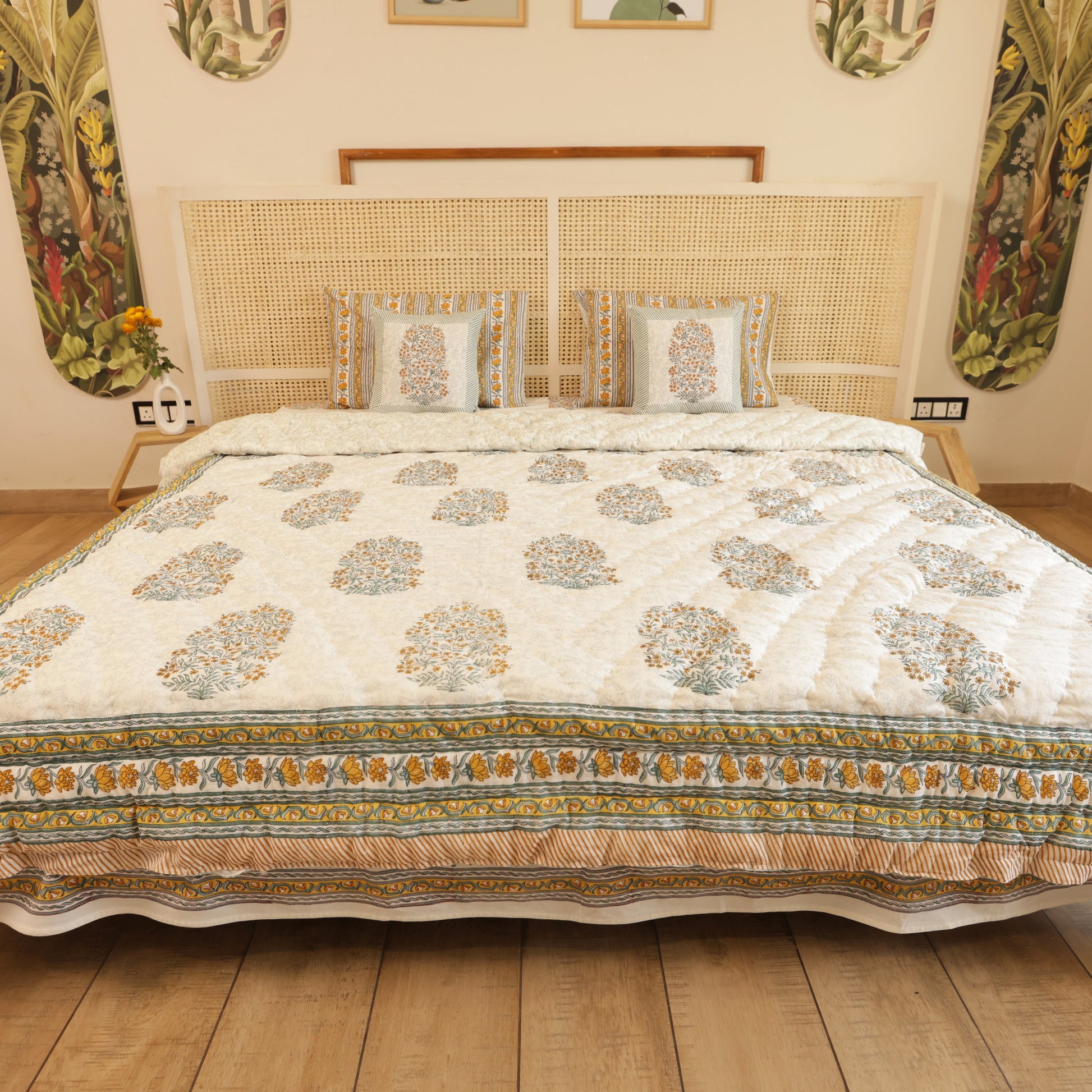 Boota Garden Bedding Collection Set of 6 (1 Bedcover, 2 Pillow cover, 1 Quilt, 2 Cotton cushion covers)
