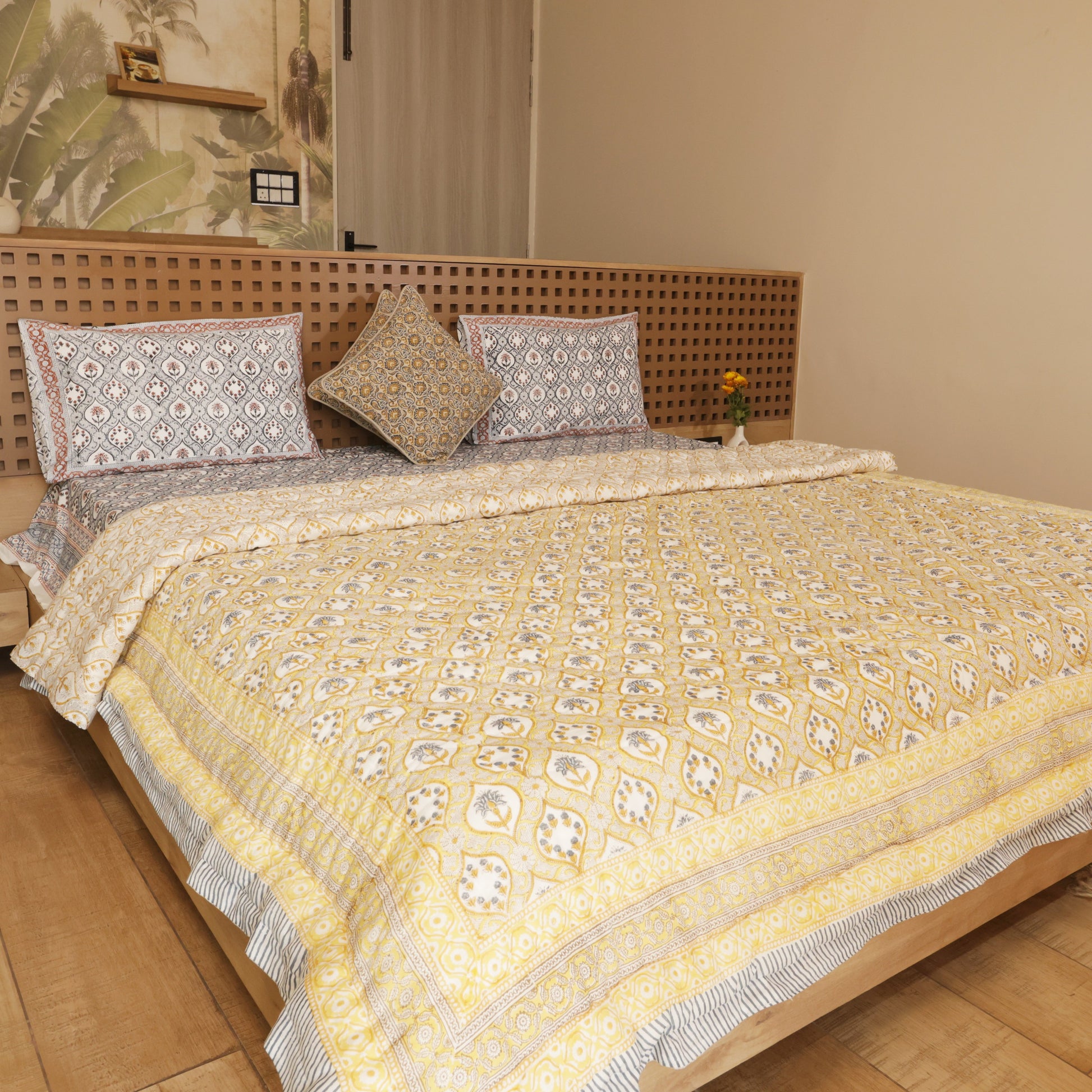 Pushp Bedding Collection Set of 6 (1 Bedcover, 2 Pillow cover, 1 Quilt, 2 Linen cushion covers)