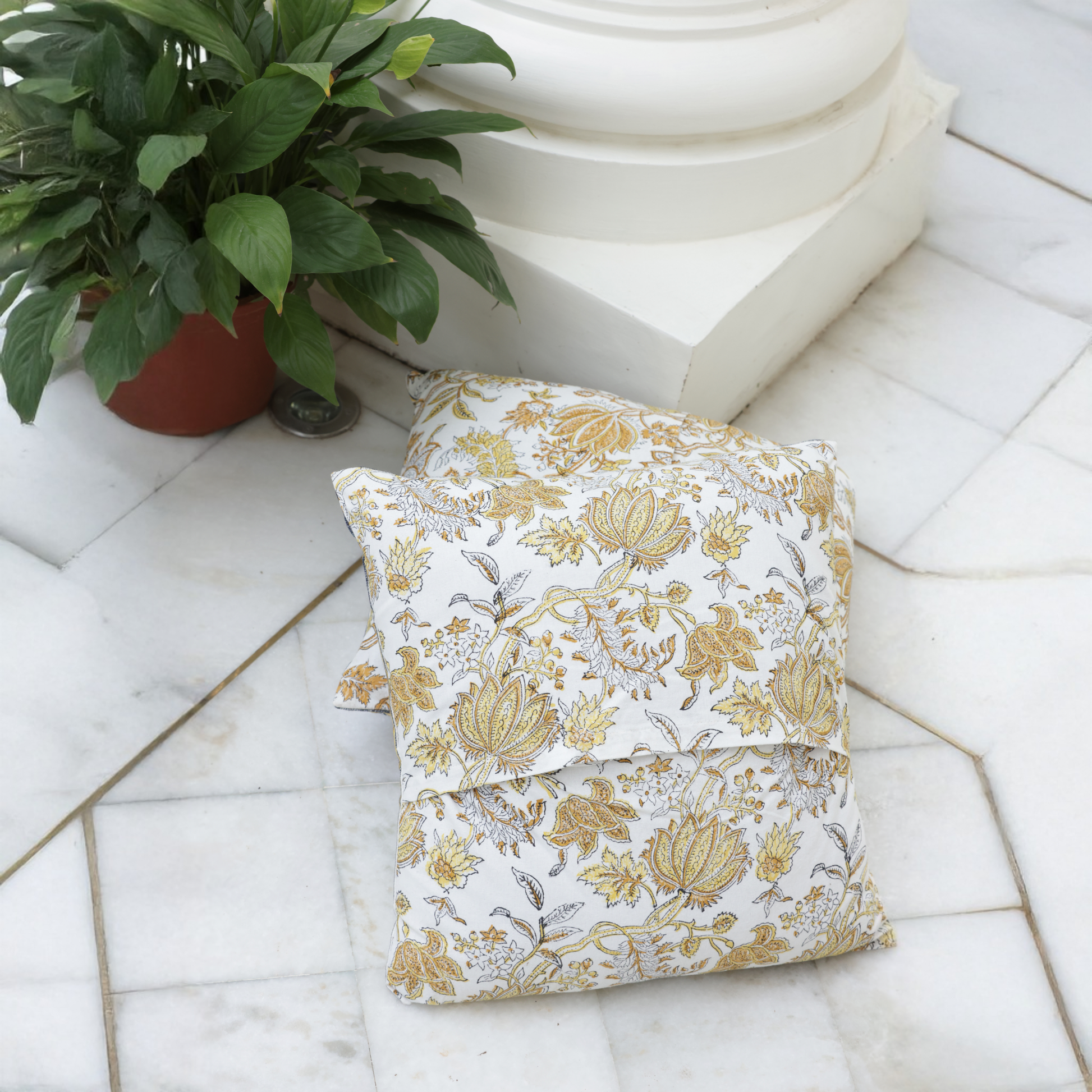 The Golden Lotus Cushion Cover showcases the timeless art of Jaipur’s hand block printing, crafted by skilled artisans in Sanganer. Featuring intricate designs that celebrate India’s rich heritage, this cushion cover adds refined elegance and handcrafted charm to any modern home. Its luxurious texture and detailed print make it a perfect accent to elevate your living space with authenticity and artistry. Experience the heritage and craftsmanship woven into every detail.