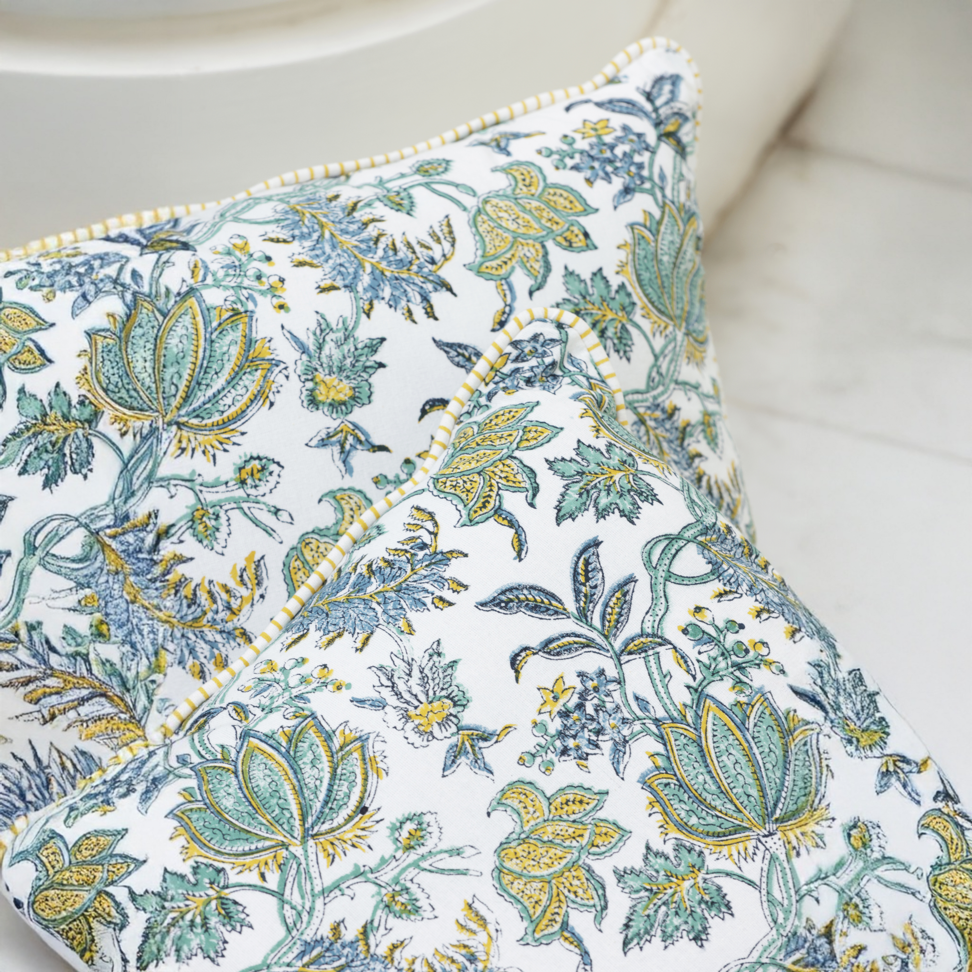 The Green Lotus Cushion from Handblockhome embodies the rich tradition of hand block printing from Jaipur’s Sanganer region. Expertly crafted by artisans, this cushion blends intricate design with luxurious fabric to elevate contemporary interiors. Each piece reflects a heritage of skilled craftsmanship, offering a refined, hand-finished elegance that brings timeless cultural artistry into your living space. Experience the depth of heritage in every detail.