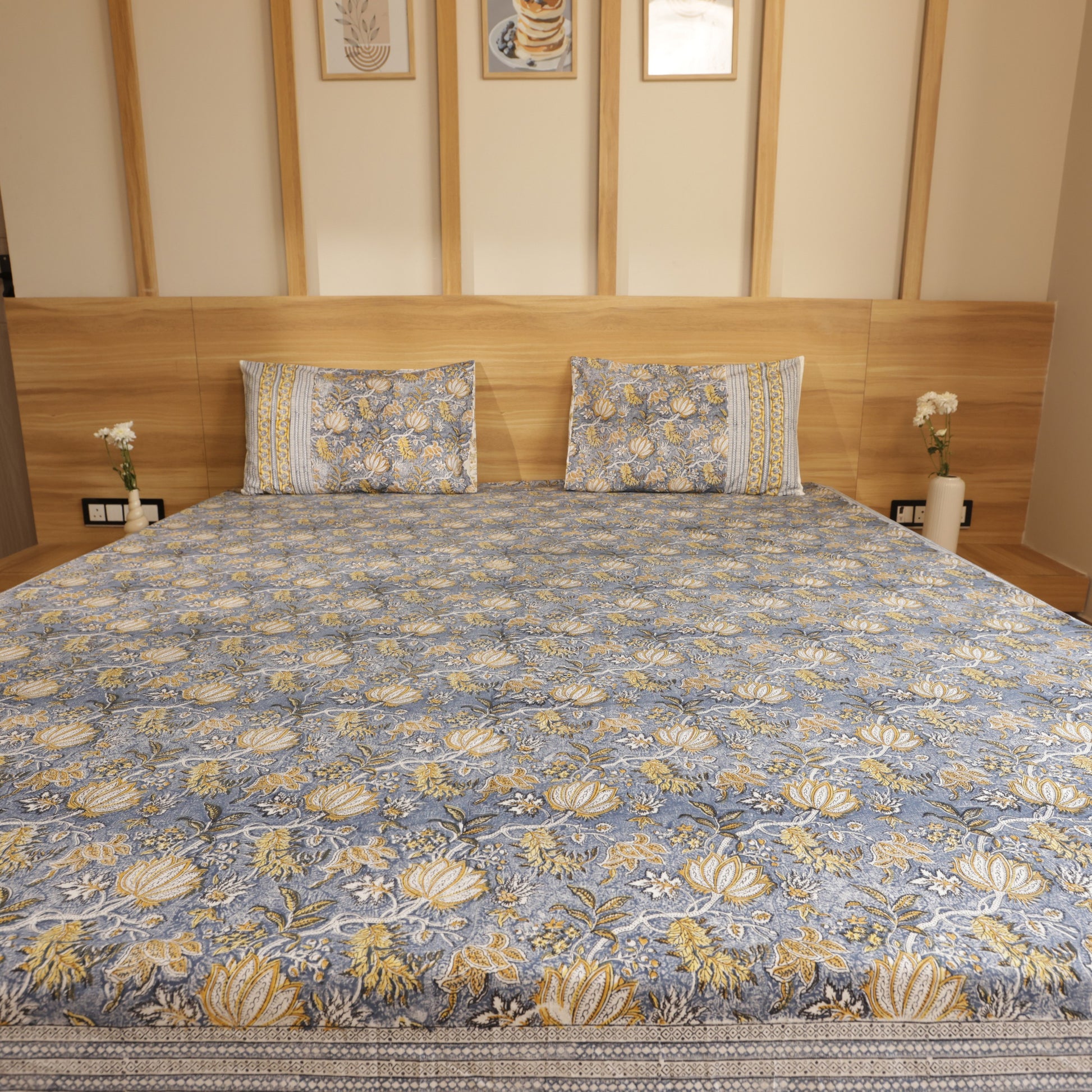 The Golden Lotus Bedcover, handcrafted in Jaipur from pure cotton, offers exceptional breathability and lightweight comfort ideal for daily use. Its traditional craftsmanship combined with practical design ensures durability and easy maintenance, making it a stylish yet functional addition to your bedroom.